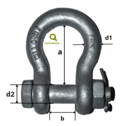| Cuerpo Ø d1 | Rosca Ø d2 | Altura libre a mm | Boca libre b mm | Carga de trabajo Kgrs |
