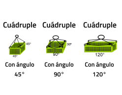 | KILOS A LEVANTAR | ESLINGA CUADRUPLE CON ANGULO DE 45º | ESLINGA CUADRUPLE CON ANGULO DE 90º | ESLINGA CUADRUPLE CON ANGULO DE 120º |
