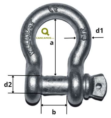 | Cuerpo Ød1 | Rosca Ød2 | Altura libre a mm | Boca libre b mm | Carga de trabajo Kgrs |