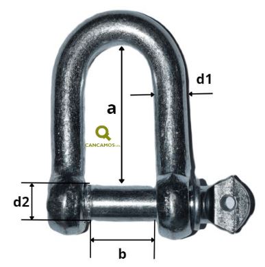 | Cuerpo Ø d1 mm | Rosca Ø d2 mm | Altura libre a mm | Boca libre b mm | Carga de trabajo Kgrs |